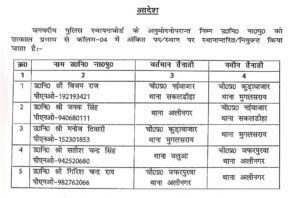 चंदौली। कानून व्यवस्था की बेहतरी को एसपी आदित्य लांघे लगातार तबादले का चाबुक चला रहे हैं। इसी क्रम में पांच उपनिरीक्षकों का कार्यक्षेत्र बदला है, जिसमें तीन चौकियों के प्रभारी शामिल हैं।