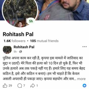 दिवंगत दवा कारोबारी रोहिताश पाल उर्फ रोमी के पुत्र ने अपने पिता के फेसबुक वाल पर लिखा है कि पुलिस अपना काम कर रही है, कृपया इस मामले में जातिवाद का मुद्दा न उठाएं। मेरे पिता की हत्या को 10 दिन हो चुके हैं, फिर भी उनके हत्यारे अब तक पकड़े नहीं गए हैं। हमारे लिए यह समय बेहद कठिन है, इसे और कठिन न बनाएं। हम भी चाहते हैं कि केवल असली अपराधी ही पकड़ा जाए। कृपया सहयोग और समर्थन बनाए रखें।
