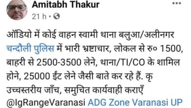 चंदौली। भ्रष्टाचार के मामलों को उजागर कर पुलिस और प्रशासन को आईना दिखाने वाले आईजी नागरिक सुरक्षा अमिताभ ठाकुर ने…