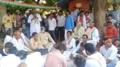 भाजपा प्रदेश अध्यक्ष के गांव में कांग्रेसियों ने दिया धरना