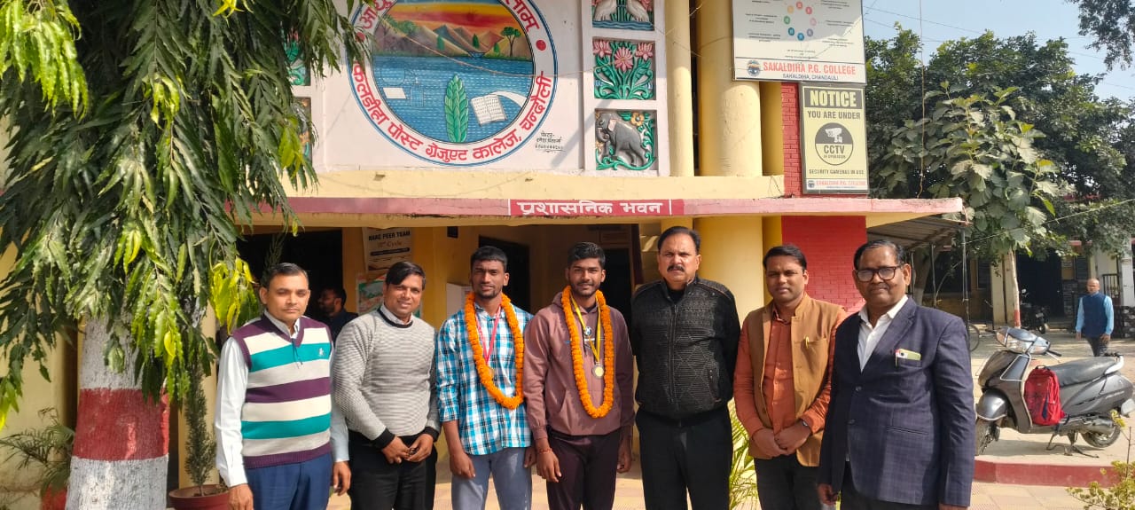 चंदौली। सकलडीहा पीजी कॉलेज में ताइक्वांडो प्रतियोगिता में उत्कृष्ट प्रदर्शन करने वाले दो प्रतिभाशाली खिलाड़ियों का सम्मान किया गया। यह सम्मान समारोह महात्मा गांधी काशी विद्यापीठ द्वारा 30 नवंबर 2025 को हरिशचंद्र पीजी कॉलेज में आयोजित अंतर महाविद्यालय ताइक्वांडो प्रतियोगिता में खिलाड़ियों की उल्लेखनीय सफलता के उपलक्ष्य में आयोजित किया गया। इस प्रतियोगिता में 68 किलोग्राम भार वर्ग में स्वर्ण पदक जीतने वाले आशीष कुमार और 63 किलोग्राम भार वर्ग में कांस्य पदक प्राप्त करने वाले प्रशांत कुमार ने महाविद्यालय को गौरवान्वित किया। उनकी इसी उपलब्धि का सम्मान समारोह पूरे महाविद्यालय समुदाय के लिए प्रेरणा और उत्साह का केंद्र बन गया।