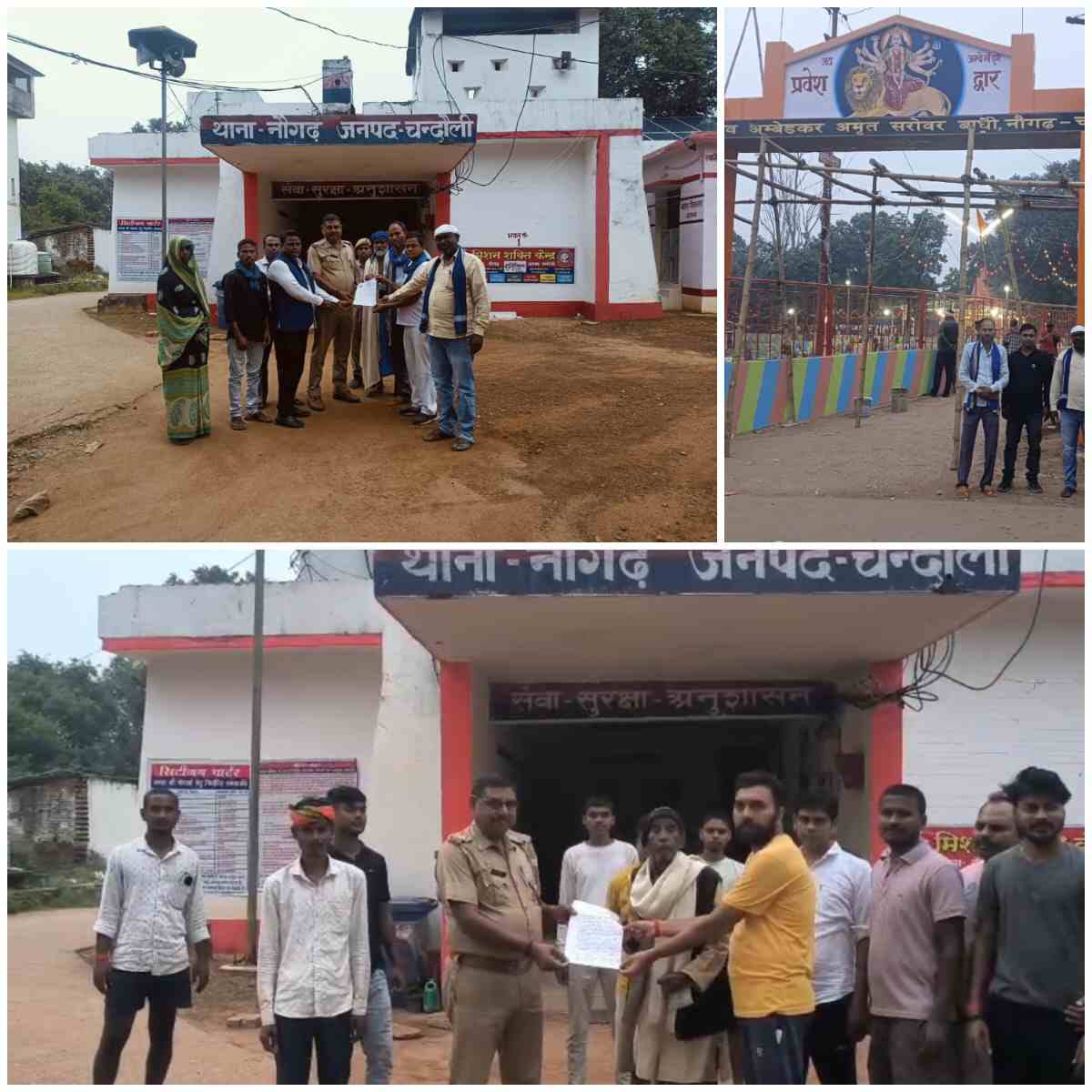 पूर्व प्रधान आशीष गुप्ता ने पुलिस को प्रार्थना पत्र देकर बताया कि वे गांव में विकास कार्यों की देखरेख करते हैं। डाला छठ पर दुर्गा मंदिर पोखरे की सफाई, सुंदरीकरण व डा. भीमराव अंबेडकर अमृत सरोवर के गेट पर मां दुर्गा का छाया चित्र बनवा रहे थे। उसी दौरान भीम आर्मी के सदस्य दिनेश कुमार और राजेश कुमार कुछ लोगों को साथ लेकर पहुंचे और चित्र बनवाने से रोक दिया। मां दुर्गा और सनातन के खिलाफ अभद्र टिप्पणी करने लगे। गेट पर लगा मां दुर्गा का झंडा उतारकर पार्टी का नीला झंडा लगा दिया। उन्होंने बताया कि पूरे घटनाक्रम का वीडियो मौजूद है। उन्होंने अन्य ग्रामीणों का हस्ताक्षरयुक्त प्रार्थना पत्र सौंपते हुए विपक्षियों के खिलाफ सख्त कार्रवाई की मांग की है।