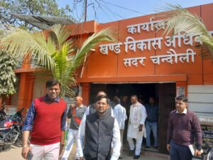 चंदौली। जिलाधिकारी चंद्रमोहन गर्ग ने शुक्रवार को विकास खंड सदर कार्यालय का औचक निरीक्षण किया। कार्यालय में अलग-अलग पटलों की जांच की। जांच के दौरान उन्होंने आन लाइन शिकायत रजिस्टर, सर्विस बुक, योजनाओं की प्रगति, शिकायत पंजिका सहित मनरेगा पटल पर मनरेगा से संबंधित रजिस्टर, जनसुनवाई व्यवस्था, सफाई, प्रधानमंत्री आवास योजना से संबंधित पत्रावली और व्यक्तिगत पत्रावलियों की भी जांच की और नागरिक सुविधाओं से संबंधित व्यवस्थाओं की समीक्षा की।