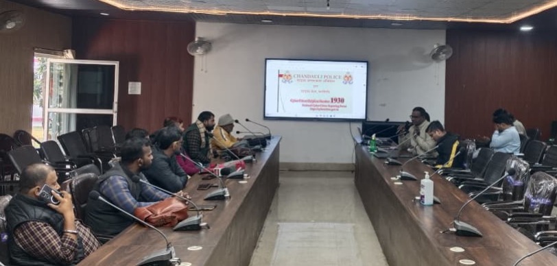 चंदौली। पुलिस अधीक्षक आदित्य लांग्हे के निर्देशन में साइबर अपराधों से बचाव और आमजन को डिजिटल सुरक्षा के प्रति जागरूक करने के उद्देश्य से सोमवार को पुलिस लाइन स्थित नवीन सभागार में विशेष साइबर जागरूकता कार्यक्रम का आयोजन किया गया। इसमें पुलिस अधिकारियों ने साइबर जालसाजी को लेकर आगाह किया। लोगों को किसी अनजान कॉल, लिंक, मैसेज अथवा ई-मेल पर भरोसा न करने की सलाह दी। बताया कि डिजिटल युग में सतर्कता ही सुरक्षा है।