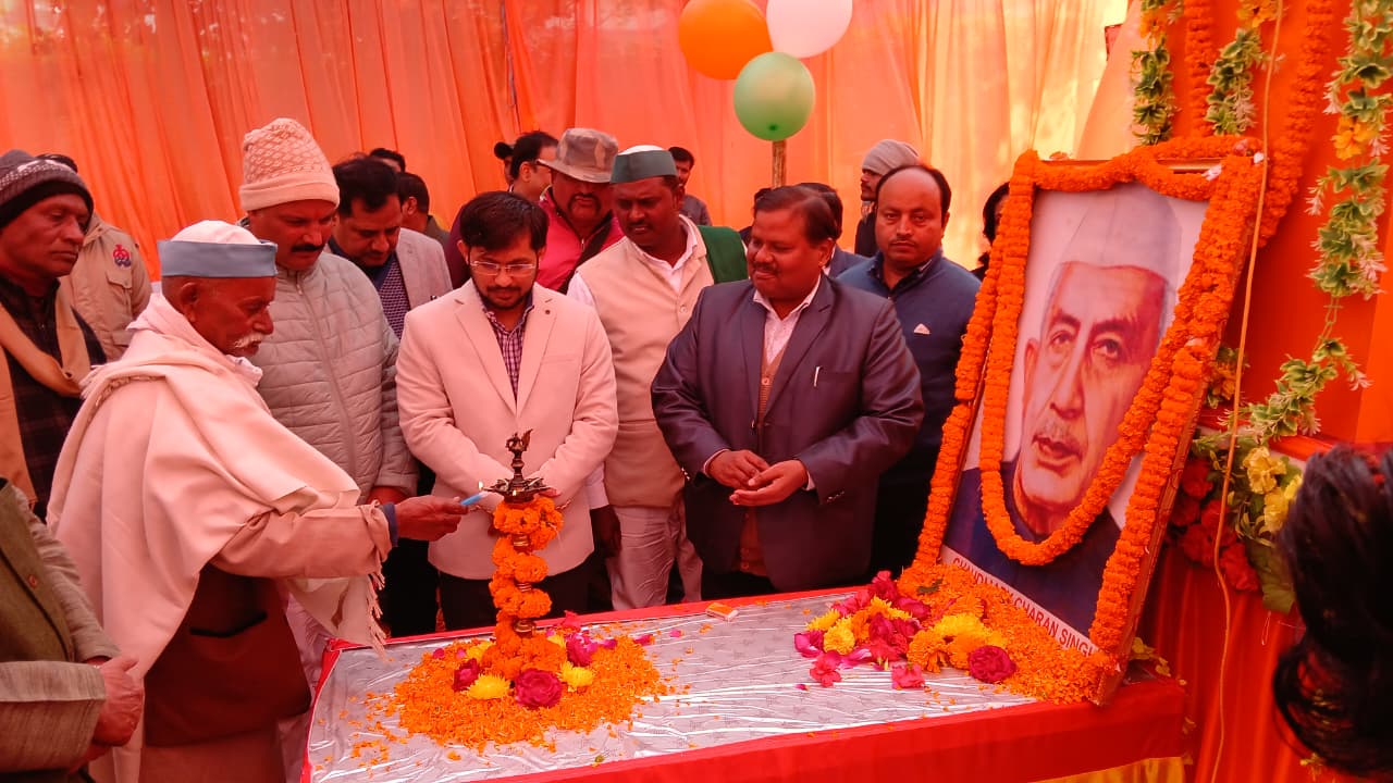 चंदौली। पूर्व प्रधानमंत्री स्व चौधरी चरण सिंह के जन्म दिवस पर मंगलवार को कृषि विज्ञान केन्द्र परिसर में किसान सम्मान दिवस /किसान मेला/रबी उत्पादकता गोष्ठी का आयोजन किया गया। जिलाधिकारी चंद्र मोहन गर्ग ने चौधरी चरण सिंह की प्रतिमा पर माल्यार्पण व दीप प्रज्ज्वलित कर श्रद्धांजलि अर्पित की। वहीं स्टाल का अवलोकन किया। इस दौरान बेहतर काम करने वाले किसानों को सम्मानित किया गया।