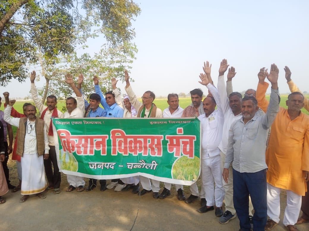 चंदौली। शहाबगंज ब्लॉक के जेंगुरी गांव में किसान विकास मंच के बैनर तले आयोजित किसान गोष्ठी में भारत-अमेरिका कृषि व्यापार समझौते, एमएसपी गारंटी कानून और धान खरीद पोर्टल बंदी जैसे मुद्दों पर किसानों ने जोरदार विरोध दर्ज कराया। जागरूकता अभियान के तहत आयोजित इस बैठक में बड़ी संख्या में किसान शामिल हुए और सरकार की नीतियों पर खुलकर नाराजगी जताई।