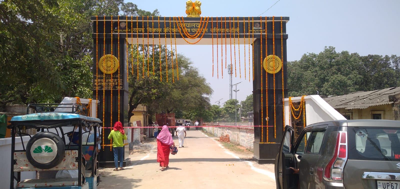 चंदौली। चकिया ब्लॉक परिसर में नवनिर्मित भव्य प्रवेश द्वार का बुधवार को विधिवत लोकार्पण किया गया। क्षेत्र पंचायत निधि से लगभग 12 लाख रुपये की लागत से तैयार इस आकर्षक द्वार का उद्घाटन चकिया विधायक कैलाश आचार्य ने फीता काटकर किया। उन्होंने क्षेत्र में कराए जा रहे विकास कार्यों का उल्लेख किया।