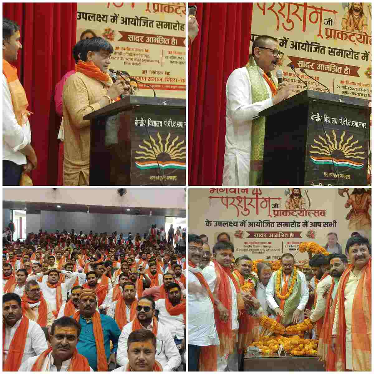चंदौली। पीडीडीयू नगर स्थित केंद्रीय विद्यालय के प्रेक्षागृह में बुधवार को भगवान परशुराम प्राकट्योत्सव भव्य और उत्साहपूर्ण वातावरण में मनाया गया। कार्यक्रम में ब्राह्मण समाज के लोगों की भारी भागीदारी रही और ऑडिटोरियम खचाखच भरा नजर आया। वैदिक मंत्रोच्चार के बीच दीप प्रज्ज्वलन के साथ कार्यक्रम का शुभारंभ हुआ, जिससे पूरा वातावरण भक्तिमय हो उठा।
