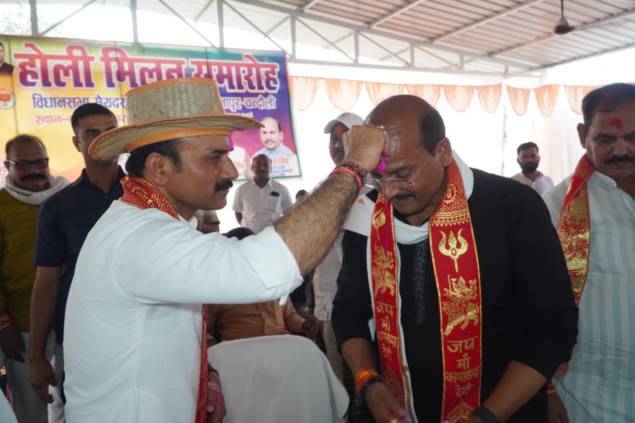 चंदौली। रंग पंचमी के अवसर पर धानापुर ब्लॉक परिसर में आयोजित होली मिलन समारोह के तहत “श्रीकृष्ण-सुदामा रंग उत्सव” का भव्य आयोजन किया गया। इस कार्यक्रम में विधायक सुशील सिंह मुख्य रूप से शामिल हुए और क्षेत्रवासियों के साथ रंगों के इस उत्सव में भाग लेकर सभी को रंग पंचमी की शुभकामनाएं दीं।
