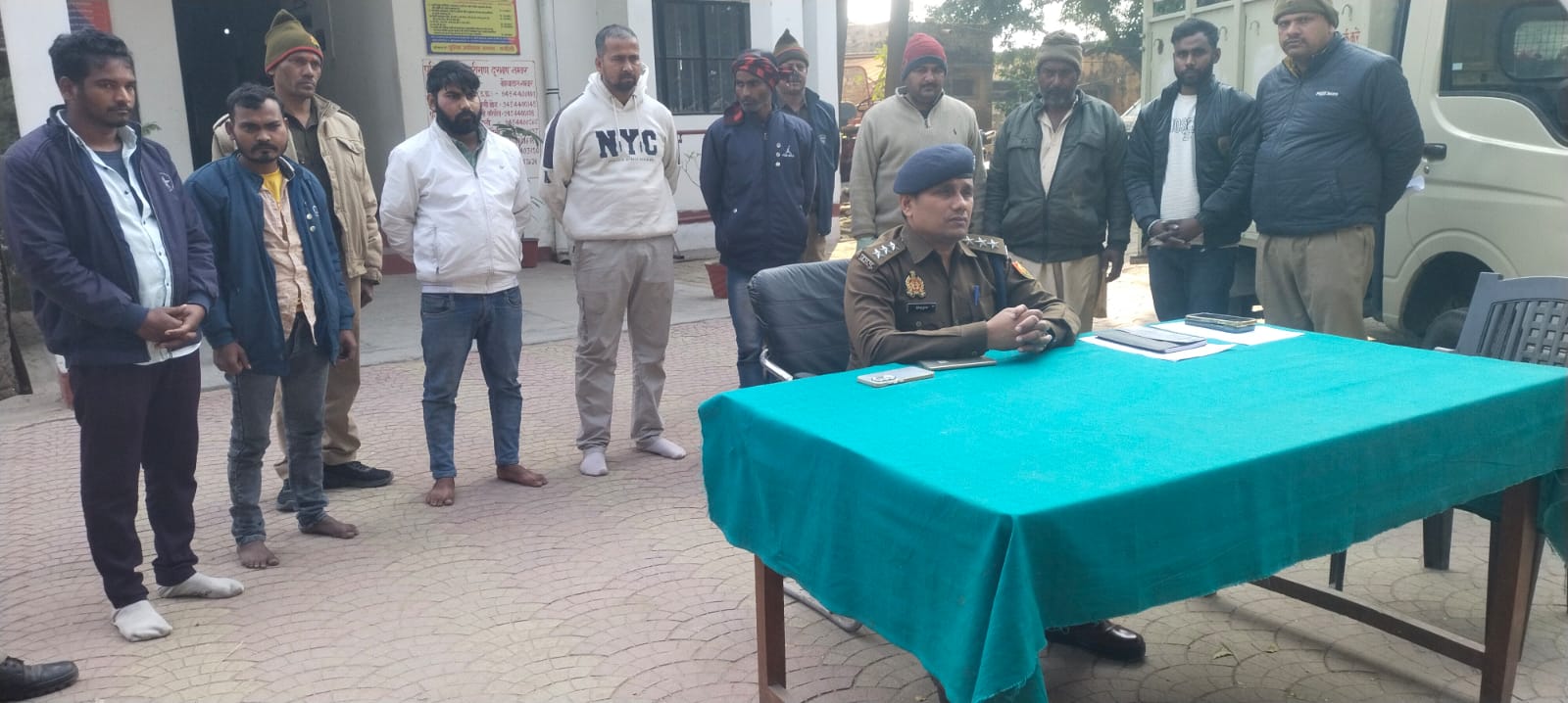 चंदौली। जिले में गौतस्करी के विरुद्ध चलाए जा रहे सख्त अभियान के तहत थाना सैयदराजा पुलिस को बड़ी सफलता हाथ लगी है। चेकिंग के दौरान पुलिस टीम ने एक डीसीएम और तीन मैजिक वाहनों में लादकर वध हेतु ले जाए जा रहे 16 गोवंशों (15 गाय व 1 बछड़ा) को बरामद करते हुए 7 शातिर गो-तस्करों और 1 पासर सहित कुल 8 अभियुक्तों को गिरफ्तार किया है।