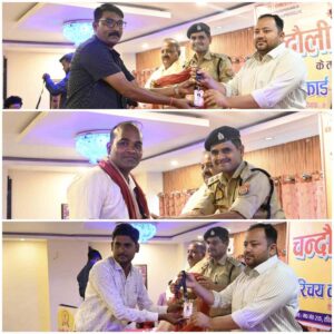 चंदौली । चंदौली प्रेस क्लब की ओर से पीडीडीयू नगर स्थित होटल स्प्रिंग स्काई में भव्य परिचय पत्र वितरण कार्यक्रम का आयोजन किया गया। इस दौरान क्लब से जुड़े 40 से अधिक पत्रकार सदस्यों को एसडीएम अनुपम मिश्रा और सीओ कृष्ण मुरारी शर्मा के हाथों परिचय पत्र प्रदान किए गए।