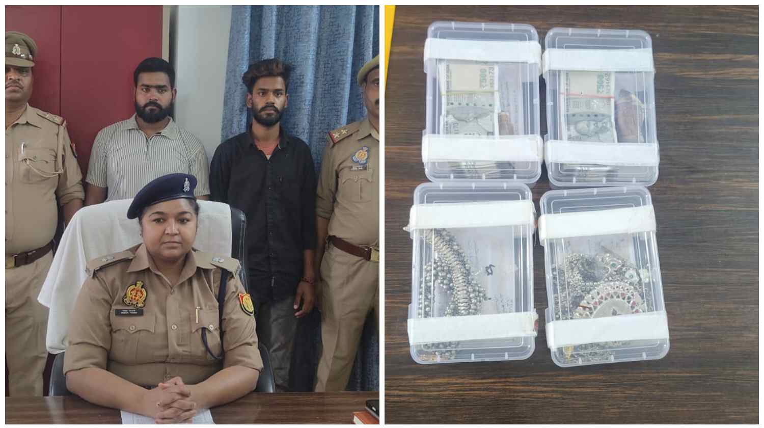 शिकायत को गंभीरता से लेते हुए धानापुर पुलिस ने तत्काल कार्रवाई शुरू की और जांच के बाद दोनों आरोपियों को शहीद गांव के पास से गिरफ्तार कर लिया। पुलिस ने जब उनकी तलाशी ली, तो उनके कब्जे से बड़ी मात्रा में गहने और नकदी बरामद हुई। बरामद सामान में एक जोड़ी चांदी की पाजेब, सोने का मांग टीका, सोने की अंगूठी, चांदी की कमरबंद, दो जोड़ी सोने के कान के टॉप्स, एक सोने की नथिया और एक लाख 350 रुपये नकद शामिल हैं। पुलिस के अनुसार, बरामद सामान की कुल कीमत तीन लाख रुपये से अधिक आंकी गई है।