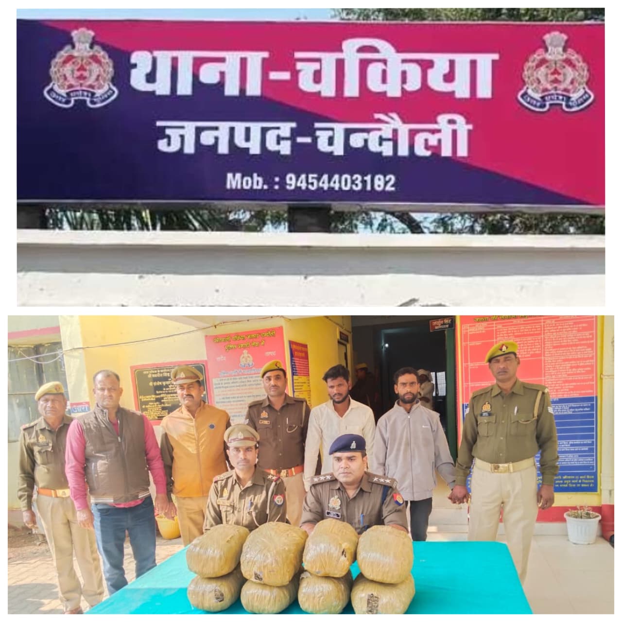 चंदौली। चकिया पुलिस ने बड़ी कामयाबी हासिल करते हुए दो शातिर तस्करों को गिरफ्तार किया। उनके पास से 16.200 किलोग्राम गांजा बरामद किया गया। इसकी अनुमानित कीमत लगभग 4 लाख रुपये आंकी गई है। तस्कर बिहार से गांजा लाकर यूपी में सप्लाई करते थे।