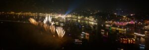 वाराणसी। देव दीपावली के पावन अवसर पर बुधवार की शाम पतित पावनी मां जाह्नवी के अर्धचंद्रकार घाटों ने दीपों का ऐसा हार पहना, मानों देवलोक की दीप्ति काशी में आलोकित हो उठी हो। अस्सी से लेकर नमो घाट तक दीपमालाओं ने अद्भुत और अलौकिक आभा बिखेरी। गंगा उस पार शानदार आतिशबाजी ने देश-विदेश से आए पर्यटकों को रोमांचित किया तो चेतसिंह घाट पर थ्री डी लेजर शो में काशी की धार्मिक परंपरा और आध्यात्मिक दर्शन की झलक देखने को मिली। दशाश्वमेध घाट पर मां गंगा की विश्वप्रसिद्ध महाआरती ने आध्यात्म और राष्ट्रभक्ति के साथ ही स्वच्छ और निर्मल गंगा के संकल्प को जीवंत किया। ऑपरेशन सिंदूर को समर्पित महाआरती में देश के लिए अपनी जान न्योछावर करने वाले वीर बलिदानियों के परिजनों को भगीरथ शौर्य सम्मान से नवाजा गया। सूबे के मुखिया योगी आदित्यनाथ के साथ ही दुनिया भर से करीब 20 लाख पर्यटक और श्रद्धालु इस अलौकिक पल का साक्षी बनने के लिए काशी पहुंचे। तस्वीरें में देखिये काशी की देव दीपावली का अद्भुत नजारा …….।