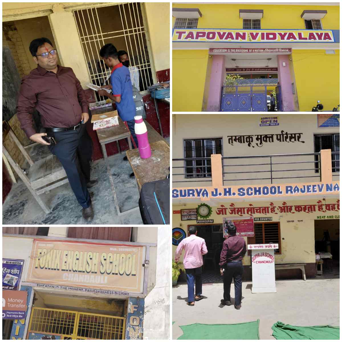 निरीक्षण के दौरान तपोवन विद्यालय, फोनिक्स स्कूल, इंडियन पब्लिक स्कूल और सूर्या जूनियर हाई स्कूल में गंभीर अनियमितताएं उजागर हुईं। इन विद्यालयों को केवल कक्षा 1 से 8 तक की मान्यता प्राप्त है, लेकिन यहां कक्षा 9 से 10 और कुछ स्थानों पर कक्षा 12 तक की पढ़ाई कराई जा रही थी।