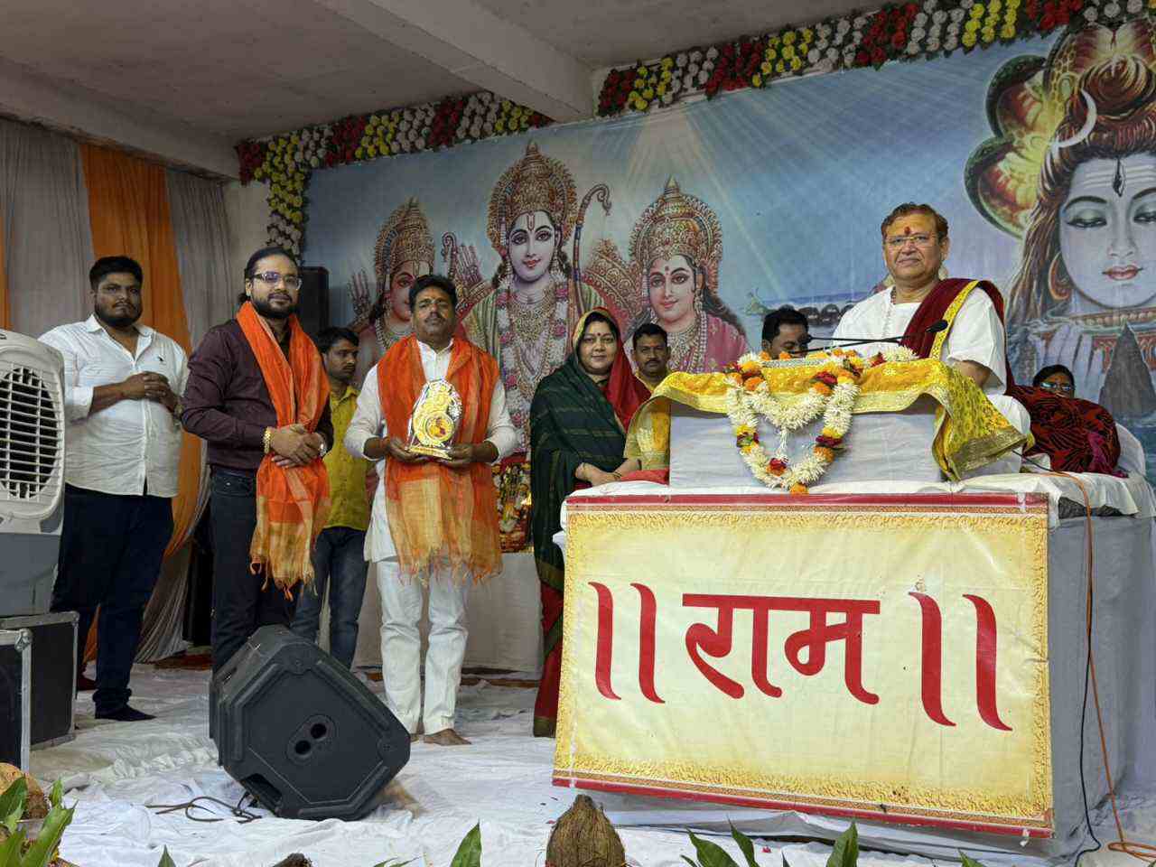 कथा के दौरान युवाओं को संस्कृति से जुड़ने और माताओं को गर्भावस्था में सात्विक जीवन अपनाने का संदेश भी दिया गया। कार्यक्रम में कई गणमान्य लोग उपस्थित रहे।