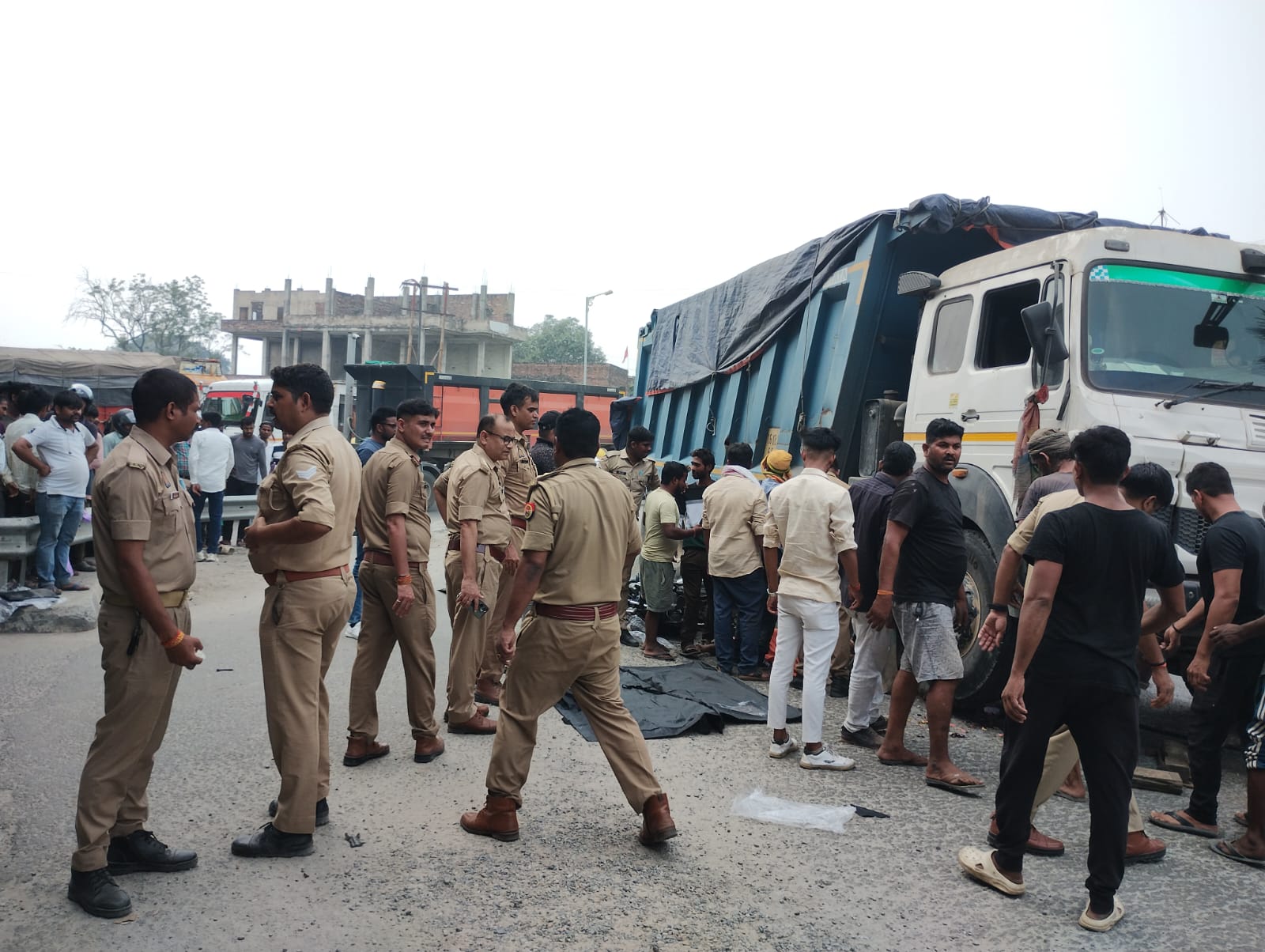 प्रत्यक्षदर्शियों के अनुसार, ओम प्रकाश ने सड़क पर आगे चल रहे डंपर को ओवरटेक करने की कोशिश की। तभी पीछे से तेज रफ्तार डंपर ने बाइक को जोरदार टक्कर मार दी। टक्कर लगते ही तीनों सड़क पर गिर पड़े और डंपर के पहियों के नीचे आ गए। घटनास्थल पर ही तीनों की मौत हो गई।