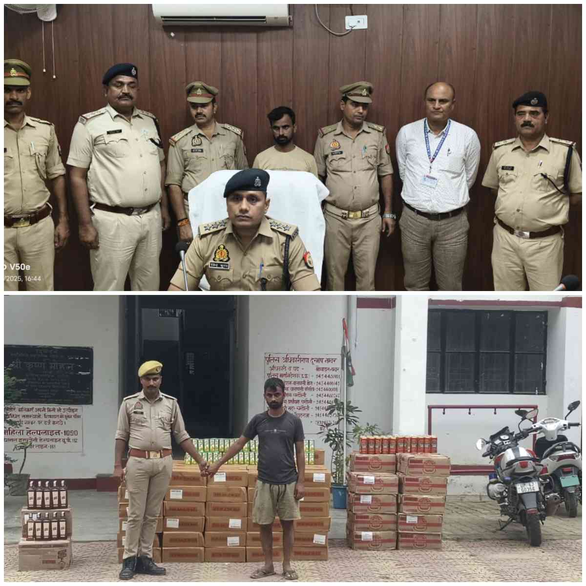 चंदौली। सैयदराजा पुलिस व आरपीएफ की संयुक्त कार्रवाई में ट्रेन से गैर-प्रांत ले जाई जा रही 121 पेटी अवैध शराब (देशी/अंग्रेजी/बीयर) की खेप बरामद कर एक शराब तस्कर को गिरफ्तार किया गया। जब्त की गई शराब की अनुमानित कीमत लगभग आठ लाख रुपये बताई जा रही है।