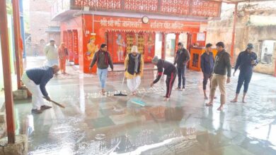 Chandauli News : रामलला की प्राण प्रतिष्ठा से पूर्व भाजपा नेता ने मंदिर में की सफाई, लोगों को किया प्रेरित