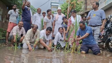 Chandauli News : क्षतिग्रस्त सड़क और जलजमाव के खिलाफ कांग्रेसजनों ने किया प्रदर्शन, गड्ढों में रोपा धान