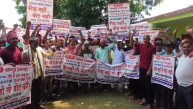 Chandauli News : महमदपुर में सड़क खस्ताहाल, ग्रामीणों ने सांसद-विधायक लापता के पोस्टर के साथ किया प्रदर्शन, बोले रोड नहीं तो वोट नहीं