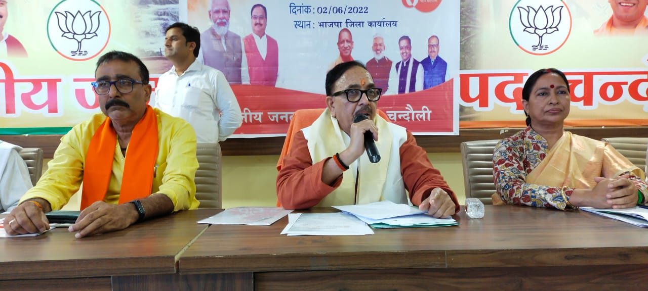 डा. पांडेय ने कहा जन धन के तहत आज 35 करोड़ लोग बैंक के खाता धारक हैं। सबको शौचालय, घर, रसोई गैस देकर सरकार ने महत्वपूर्ण उपलब्धि हासिल की है। आज विश्व आश्चर्यचकित है कि देश में 80 करोड़ से अधिक जनता को मुफ्त राशन दिया जा रहा है। जबकि कई देश विदेशों से अनाज मंगाकर खा रहे हैं। कहा कि कांग्रेस सरकार में कृषि का बजट 8.5 फीसदी था जबकि हमारी सरकार में यह आंकड़ा 38.8 फीसद पहुंच गया है। गरीब कल्याण योजना में 3.40 करोड़ रुपये की धनराशि खर्च की जा रही है। किसान सम्मान निधि के तहत 12 करोड़ किसानों के खाते में 11वीं किश्त भेजी गई है। यह अपने आप बड़ी उपलब्धि है। किसान की समृद्धि से ही देश की समृद्धि है। बताया कि जनपद में तीन लाख 51 हजार 431 कार्ड धारक हैं। उज्ज्वला योजना के तहत एक लाख 55 हजार 732 गैस कनेक्शन दिए गए हैं। जिले में 22 हजार लाभार्थियों को गोल्डन कार्ड का लाभ मिला है। 101 करोड़ की 60 छोटी परियोजनाओं के तहत कार्य कराया गया है। वहीं बड़ी परियोजनाओं में मेडिकल कालेज का निर्माण कार्य चल रहा है। पत्रकारों के सवाल पर कहा कि देश में 37 नदियों को जोड़ने का कार्य किया जा रहा है। इससे बाढ़ की समस्या का समाधान होगा। सड़क नेटवर्क 25 गुना बढ़ा है। आने वाले दिनों में भी सरकार आम गरीब व्यक्तियों के लिए बेहतर कार्य करेगी। इस अवसर पर जिलाध्यक्ष अभिमन्यु सिंह, जिला प्रभारी मीना चौबे, विधायक कैलाश आचार्य, नगर पालिका अध्यक्ष संतोष खरवार, विधायक रमेश जायसवाल, राणा प्रताप सिंह, शिवराज सिंह, जितेंद्र पाण्डेय आदि मौजूद रहे।