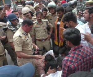 छात्रों का आरोप है कि घटना प्रिंसिपल के सामने हुई। घटना से आक्रोशित छात्र कॉलेज का गेट बंदकर धरने पर बैठ गए। वहीं परिसर में बवाल शुरू हो गया। सूचना के बाद पुलिस आयुक्त मोहित अग्रवाल, अपर पुलिस आयुक्त शिवहरी मीणा, डीसीपी प्रमोद कुमार के साथ ही सात थानों की पुलिस और सुरक्षा बल पहुंचे। पूरे परिसर को छावनी में तब्दील कर दिया गया। इस दौरान एसीपी से छात्रों की हॉट-टाक भी हो गई। पुलिस कमिश्नर ने छात्रों से बातकर उचित कार्रवाई का आश्वासन दिया। पुलिस और एसओजी की टीमें आरोपी छात्र की गिरफ्तारी में जुटी हुई हैं।